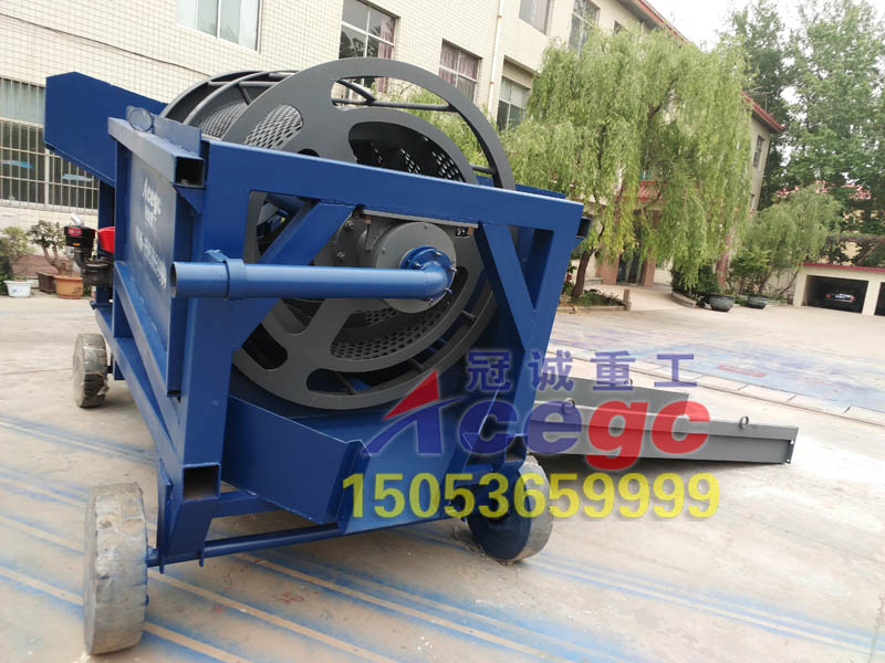 滾筒小型沙金設備,有移動式的和固定式的,今天為大家推薦的是一款小型移動沙金設備,該小型移動沙金設備是采用車輪移動,移動方便.產量從3-5t/h的倒30t/h的都有.產量再大的屬于中型的了,該設備適用于旱地,古河道,復雜地型等砂金礦區開采選金,設備為組合拆裝式,組合拆裝都是比較簡單的.這一點從設計上更方便了使用者.小型沙金設備的滾篩內有高壓噴水槍,隨時洗滌礦料,另外在設備的進料斗出也有高壓噴水槍.使礦料更均勻的流入滾篩.