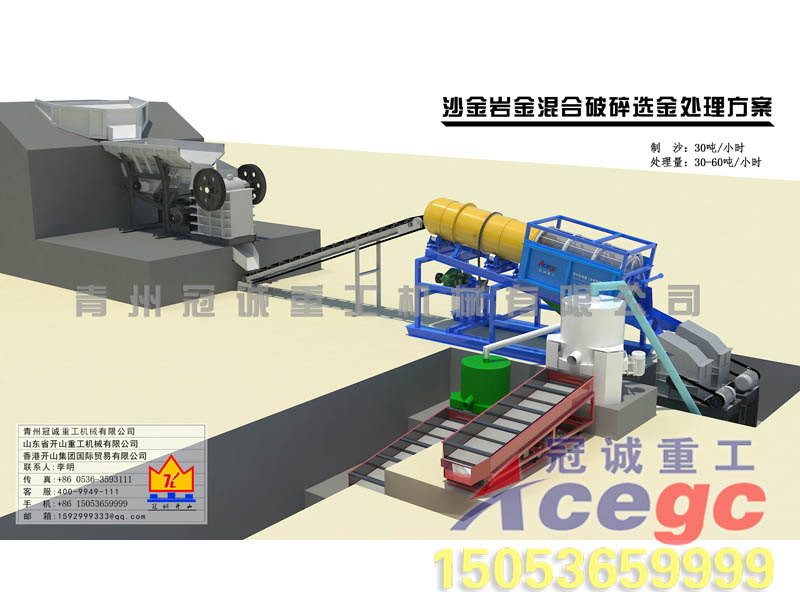 每小時制沙30噸,處理量30-60噸沙金巖金混合選金處理設備處理方案