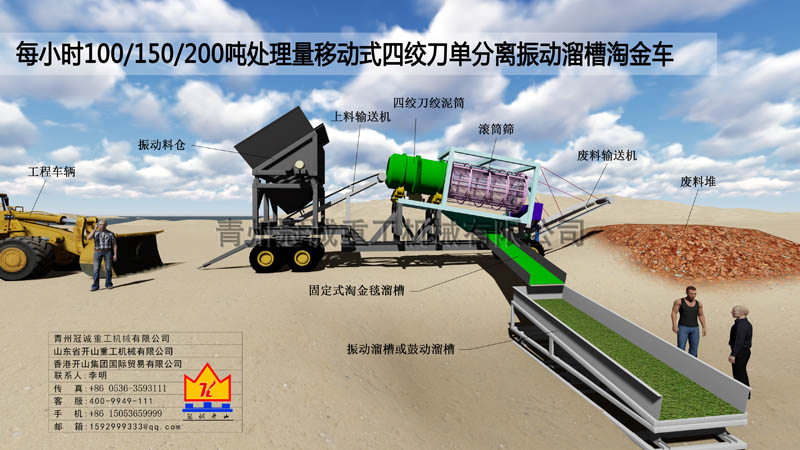 移動式四絞刀滾筒篩單分離振動溜槽沙金車簡介: